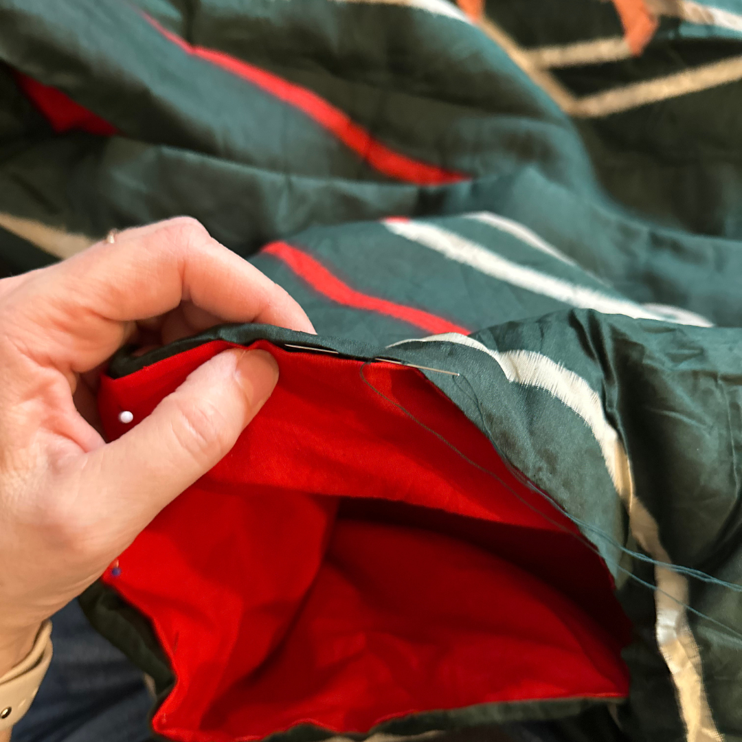 Unsere Vintage-Kimonos sind handverlesen und werden in Deutschland in einer kleinen Manufaktur nach unsere individuellen Design-Wünschen geändert. An vielen Stellen nähen wir auch noch von Hand.